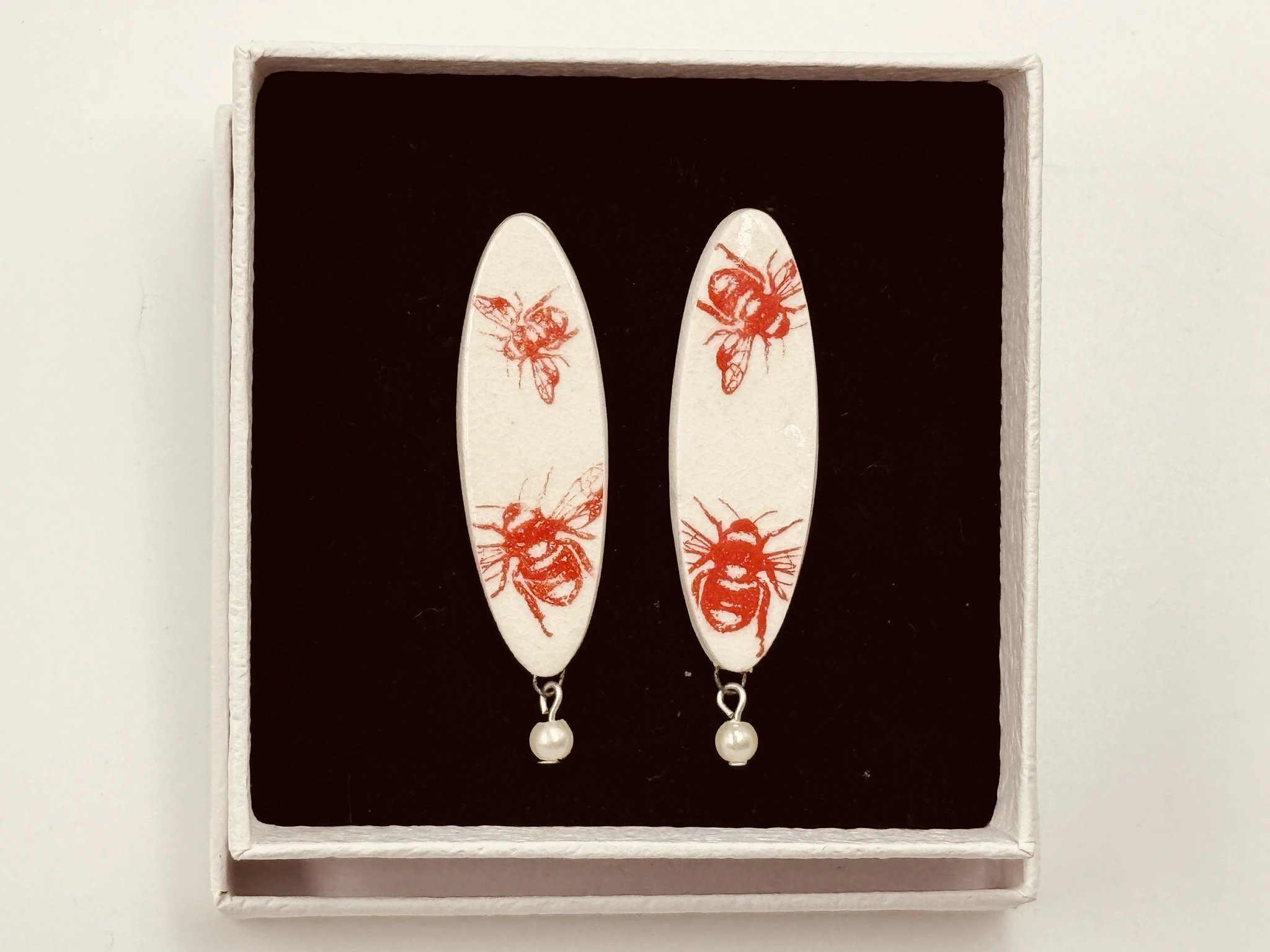 Kõrvarõngaste medaljonid on valmistatud portselanist, tagused on hõbedast.Kõrvarõngaste täispikkus umbes 6,5 cm.