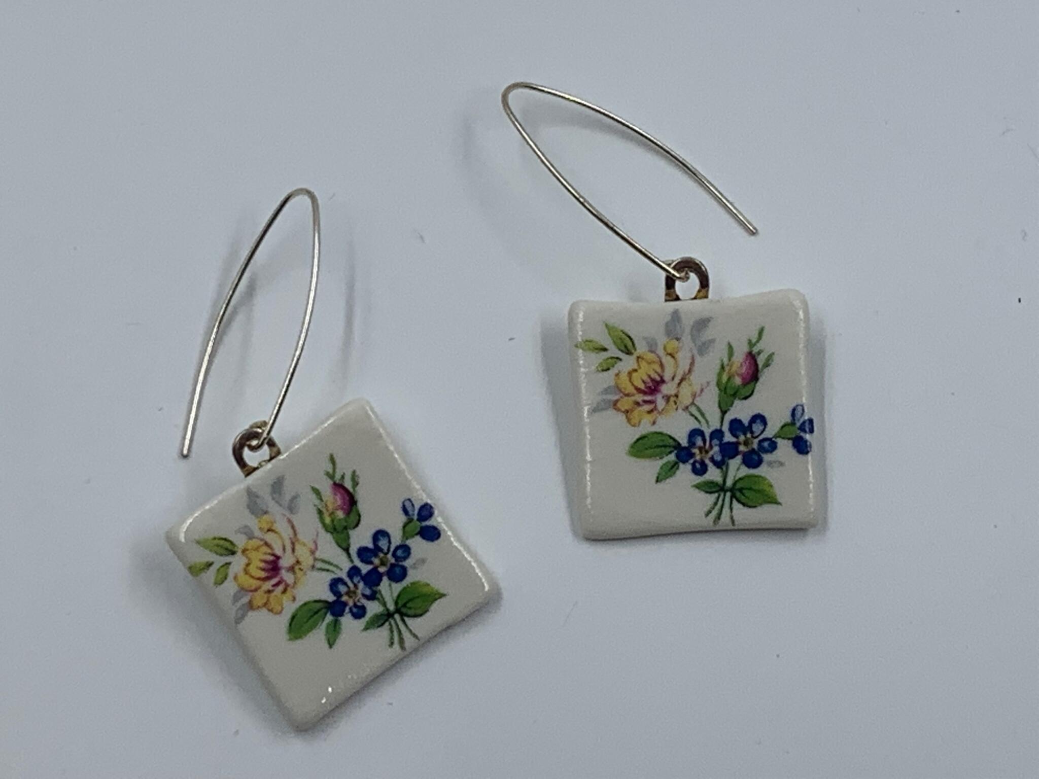 Kõrvarõngaste medaljonid on valmistatud portselanist ja tagused on hõbedast.
