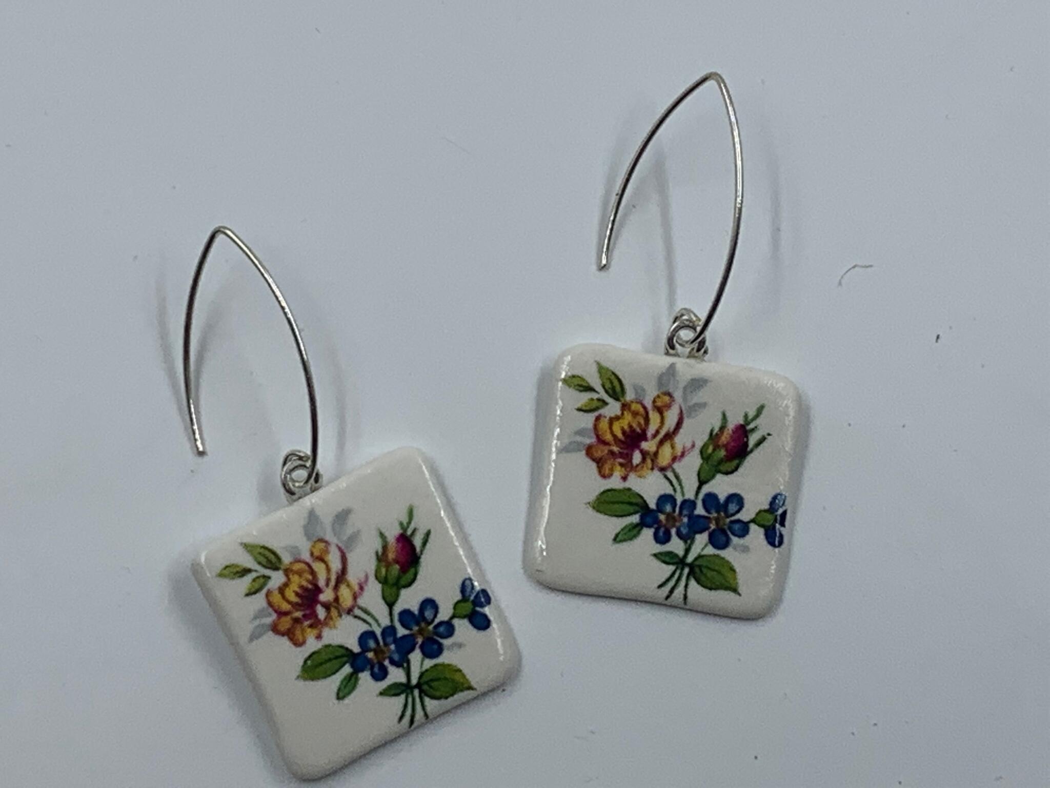 Kõrvarõngaste medaljonid on valmistatud portselanist ja tagused on hõbedast.