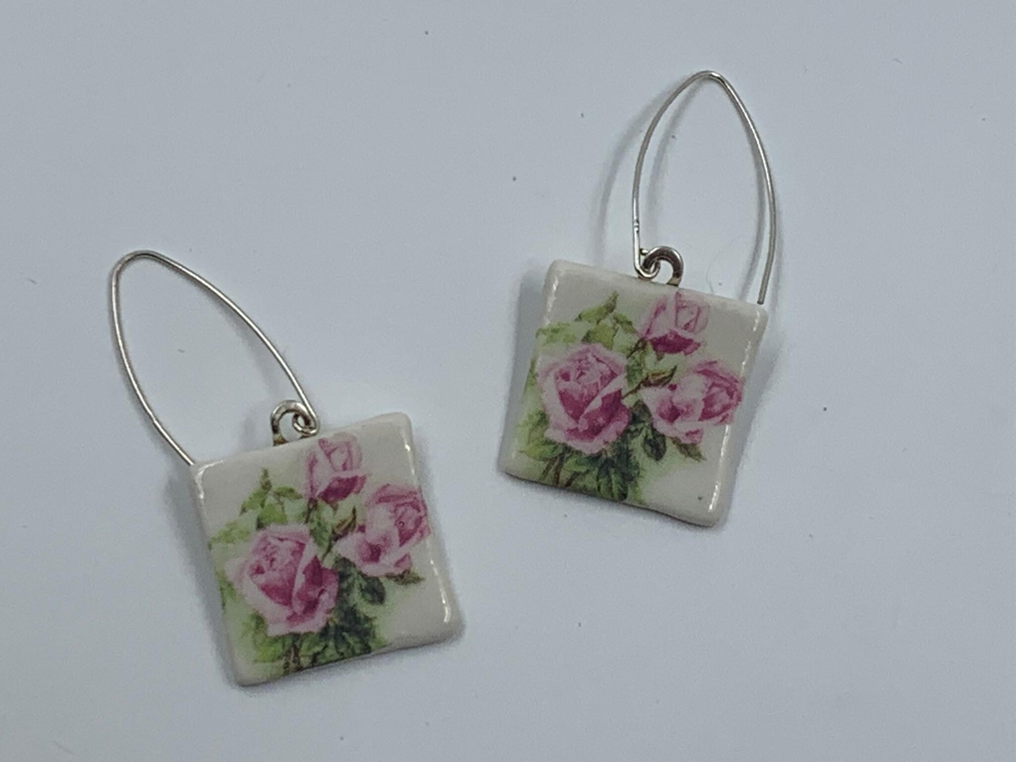 Kõrvarõngaste medaljonid on valmistatud portselanist ja tagused on hõbedast.