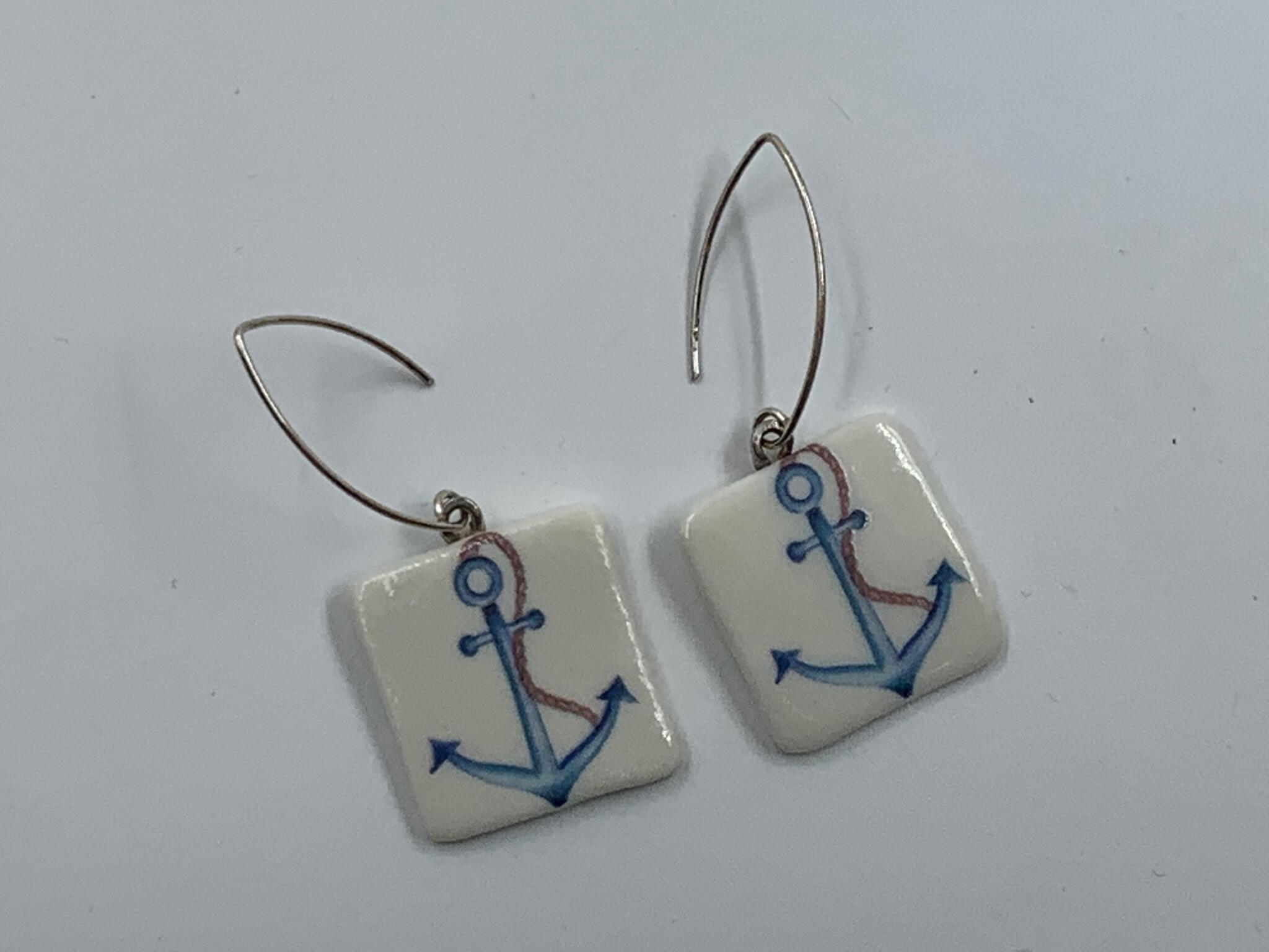 Kõrvarõngaste medaljonid on valmistatud portselanist ja tagused on hõbedast. Medaljoni läbimõõt 2,5 cm, kõrvarõngaste täispikkus 5,7 cm.