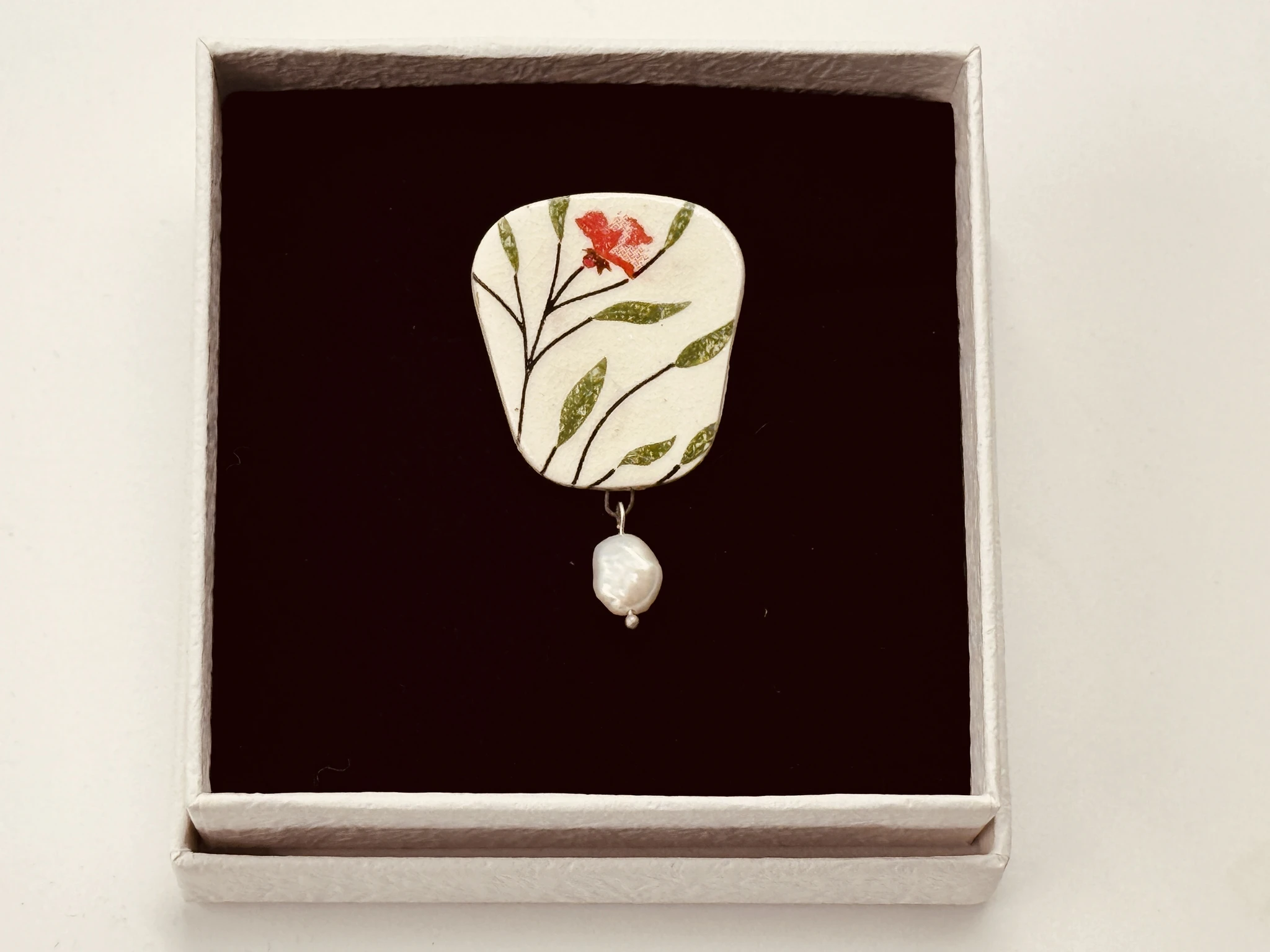 Pross on valmistatud portselanist, rippumas mageveepärl.