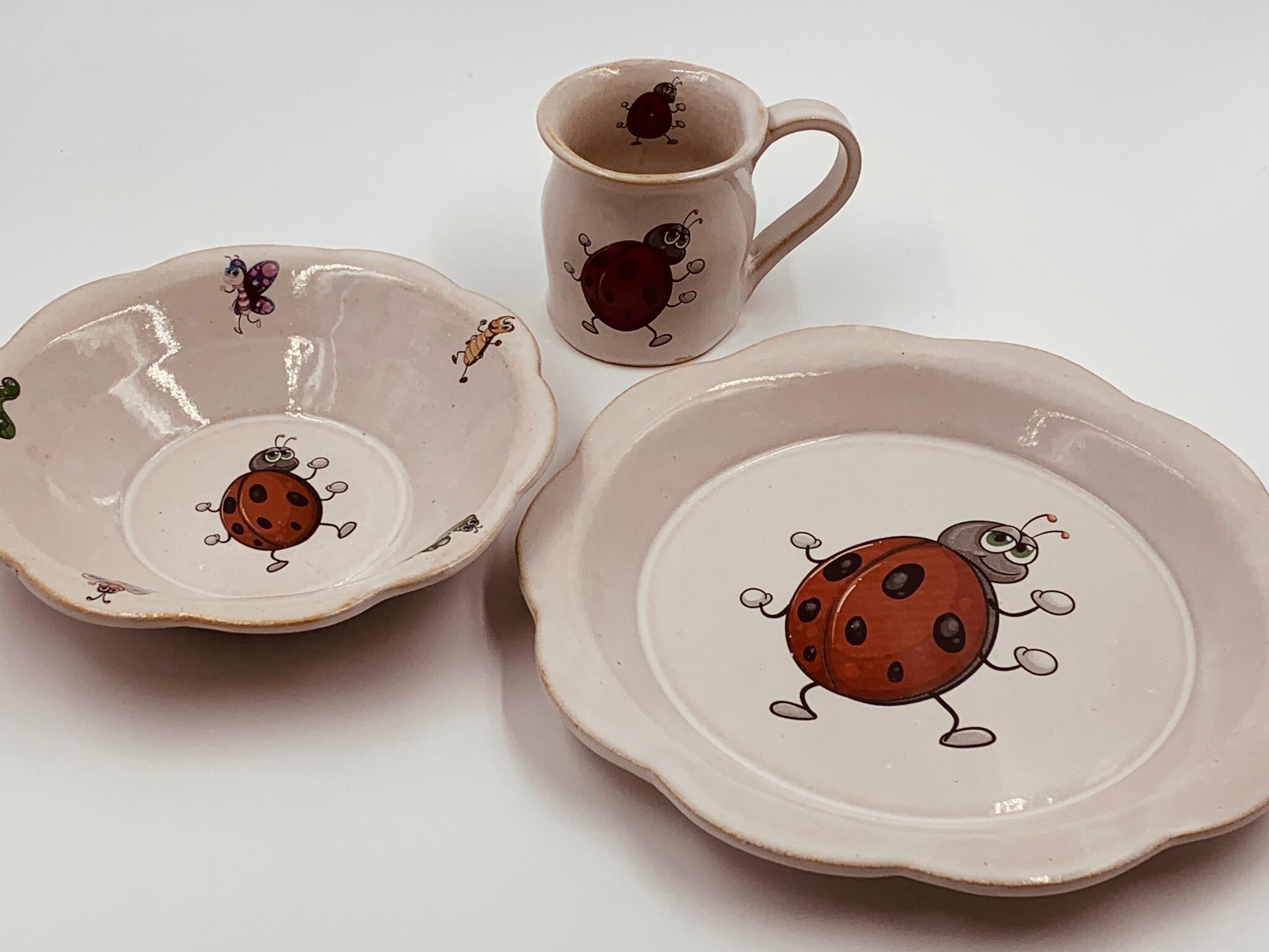 Laste komplekti kuuluvad: tass (kõrgus 7 cm ja läbimõõt 7 cm), kauss (kõrgus 4 cm ja läbimõõt 17 cm) ja taldrik (läbimõõt 21,5 cm)