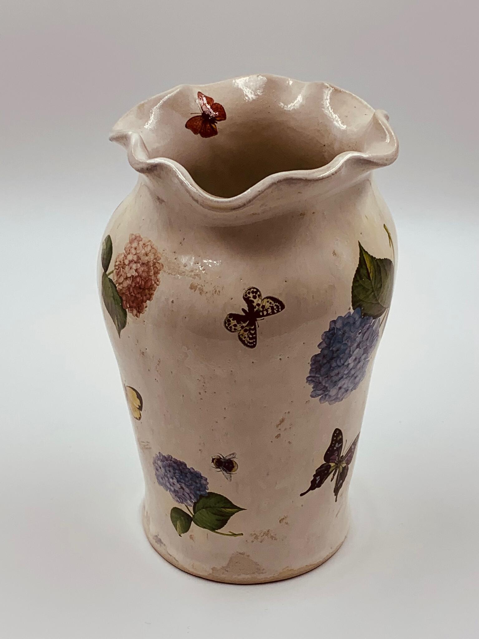 Hortensiatega vaasil on kõrgust 19,5 cm.